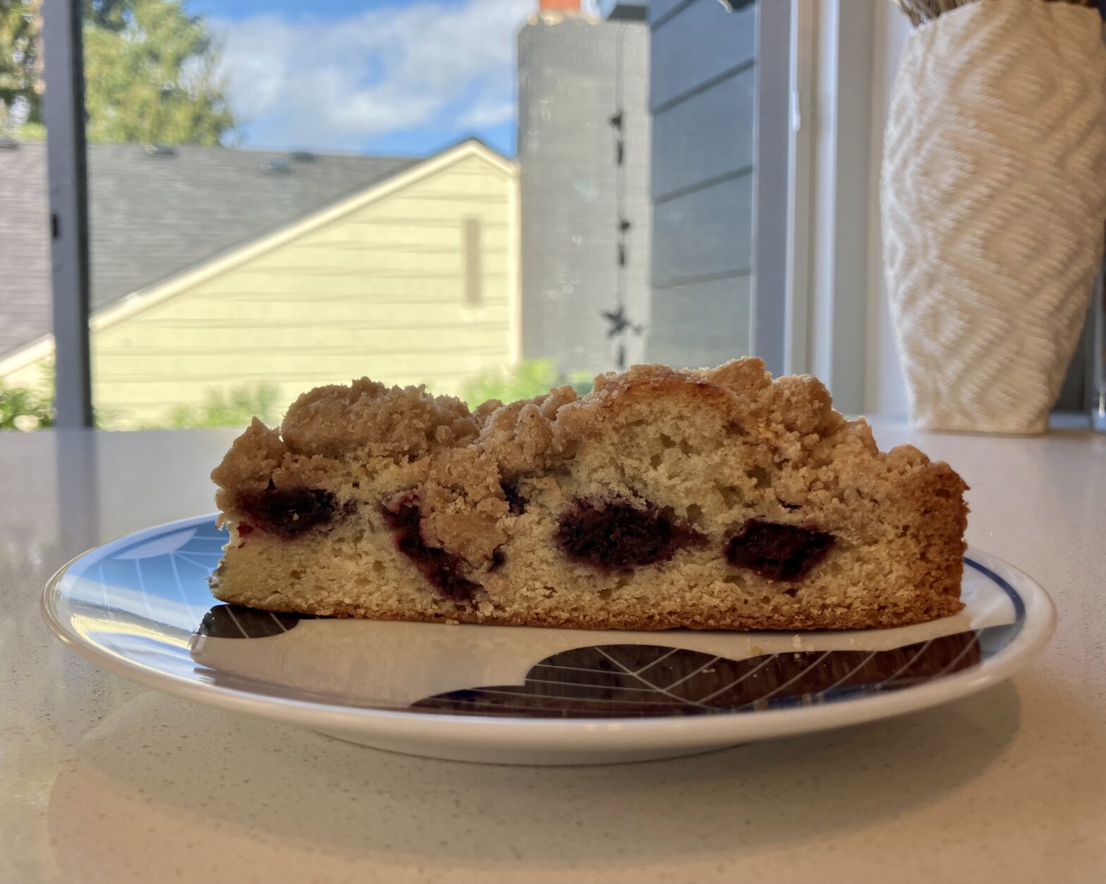 05 – Blackberry Crumb Coffee Cake 05 - Blackberry Crumb Coffee Cake $35 Filled with a half pound of blackberries. (8" square cake)