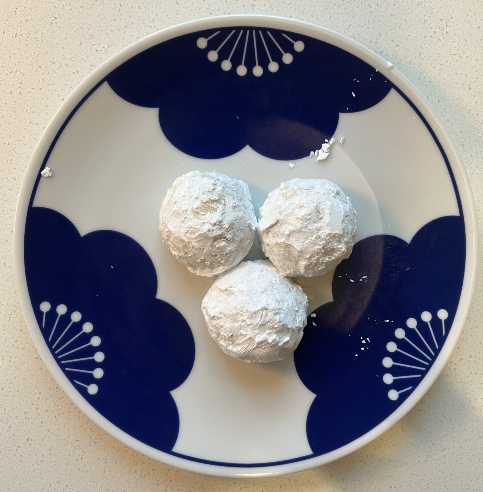 Bite-size, rounded shortbread cookies that are rolled in powdered sugar when hot from the oven for a snowball effect. (48 small cookies)
